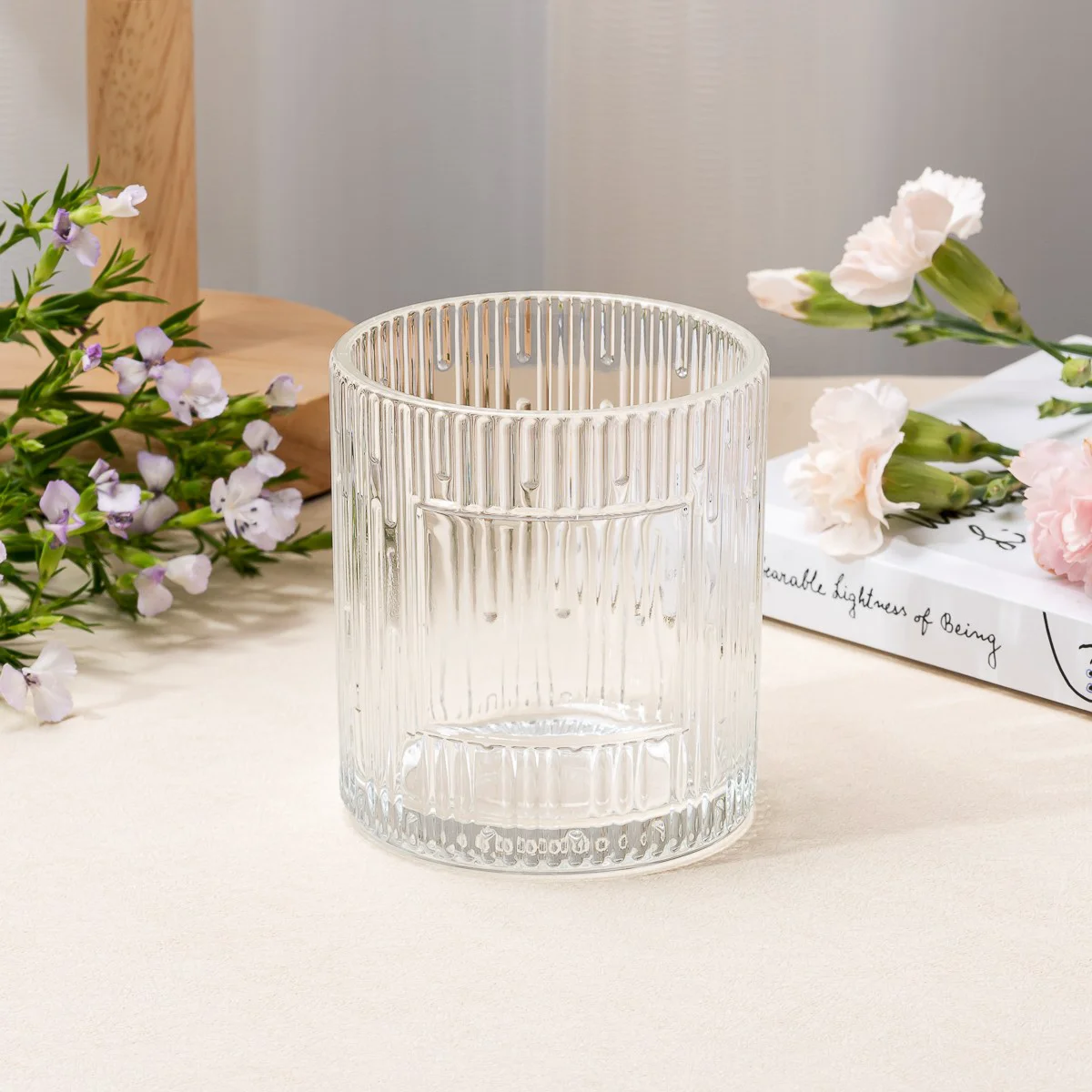 Benutzerdefiniertes Etikett vertikaler Streifenoberflächenglas Duft Kerzenglas für Wohnkultur