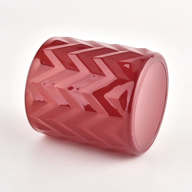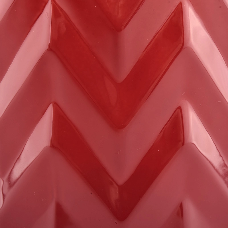 Leuchtendes rotes Glas mit erhabener Chevron-Textur für elegante Lichtbrechung.