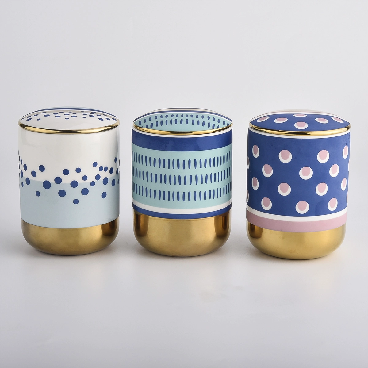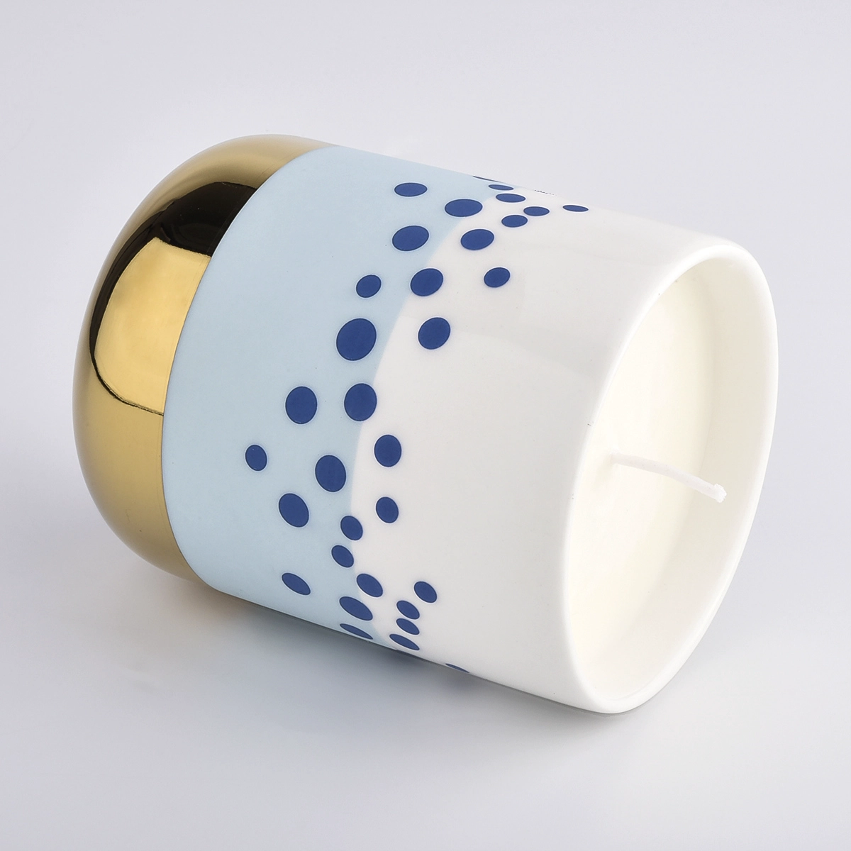 Luxuriöses handbemaltes blaues und weißes Keramikkerzenglas