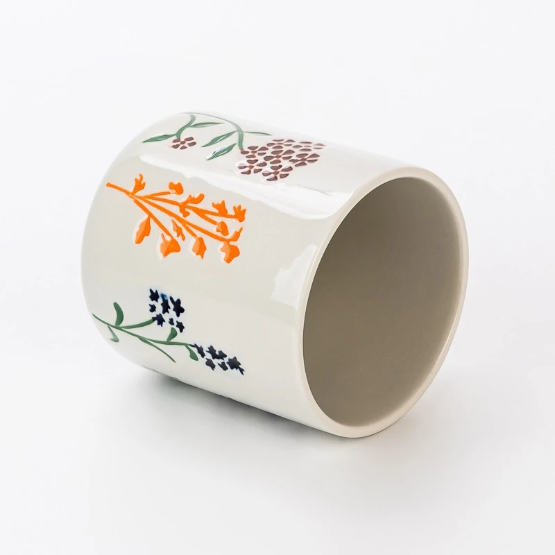 Glancēts balts reljefs dizains ar keramikas sveču traukiem