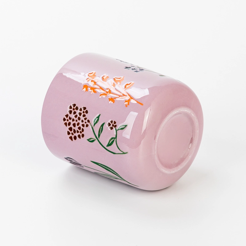 Home Decor Makintab na Kulay 14oz Walang laman Ceramic Candle Jar para sa Pakyawan